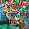Through a romantic and earthy palette of terracotta reds and an approach that borders on abstraction, the artist expresses the intrinsic charm and spiritual essence of the Loess Plateau. The brushwork is dynamic and textured, conveying the rugged and raw beauty of the landscape. The use of earth tones, combined with vibrant splashes of color, reflects the rich tapestry of the land, from its fertile soil to the varied hues that come with the changing seasons. The composition is layered and complex, much like the Plateau itself, with each brushstroke and color choice contributing to an overall sense of depth and vitality. The artwork goes beyond a literal interpretation of the terrain, offering instead a visceral and emotive representation that seeks to connect viewers to the land's ancient and enduring spirit.